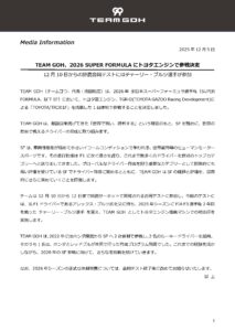 TEAM GOH、2026 SUPER FORMULAにトヨタエンジンで参戦決定