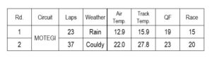“Qualifying for Miyake had been an issue so we made some radical changes to the set-up for Round 10. It all turned out to be positive and Miyake progressed through Q1 to qualify eigth. For Round 10 we made further changes for the race from the previous days’ set-up, but the direction we chose didn’t work as we ended up with bad understeer on the front and low drivability. I felt really sorry for the driver.